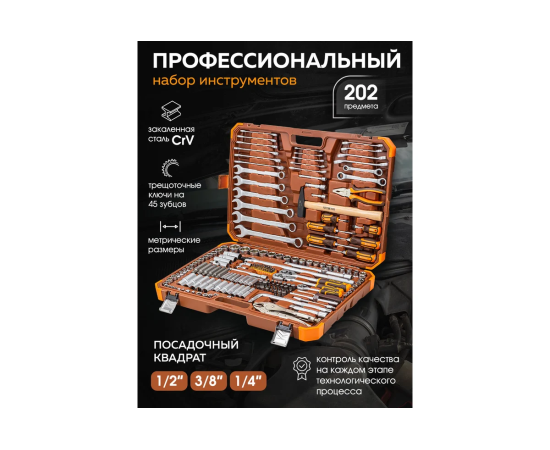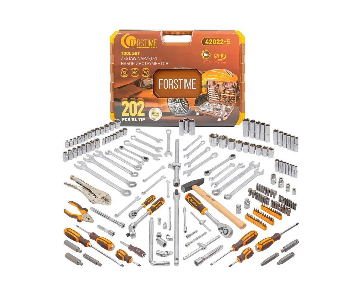 Набор инструментов FORSTIME FT-42022-5 (56911) 202пр. 1/4", 3/8", 1/2" (6гр.)