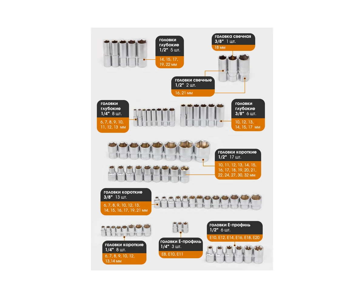 Дюймовые головки в комплекте