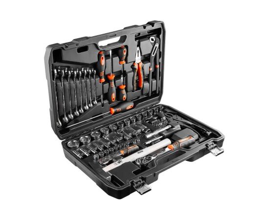 WESTER WT072– набор инструментов, содержит в себе 72 предмета для самых разных ремонтно-монтажных, демонтажных, столярно-слесарных работ. Пригодится дома, в саду, гараже, на производственных участках, автосервисах и станциях техобслуживания.