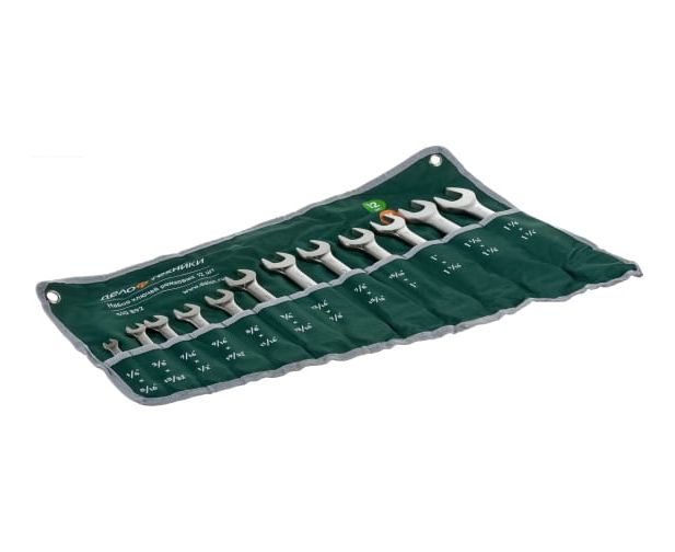 Набор рожковых дюймовых ключей 12 шт Дело Техники 510892 подходит для работы с крепежом, в том числе при большом усилии. Специальное покрытие позволяет защитить инструмент от влаги. Это сохраняет общую прочность инструмента.