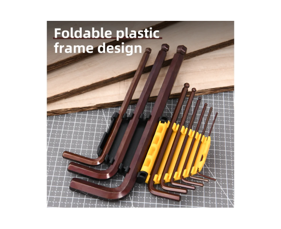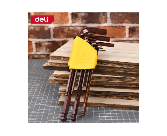 Набор ключей шестигранных Deli DL230709G с шаром удлиненных 9 шт S2, размеры 1,5,2,2,5,3,4,5,6,8,10мм, пластиковый держатель