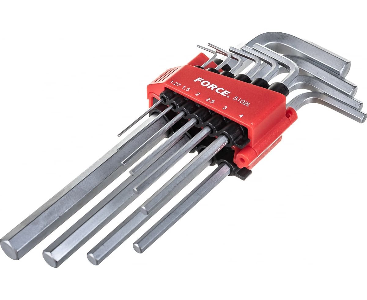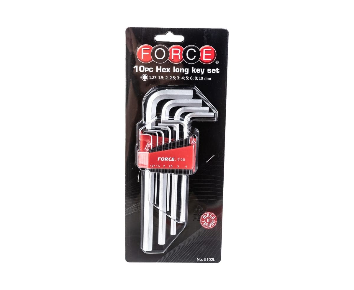 Набор средних Г-образных шестигранников 10 предметов FORCE 5102L подойдет для работы с крепежом любой сложности.