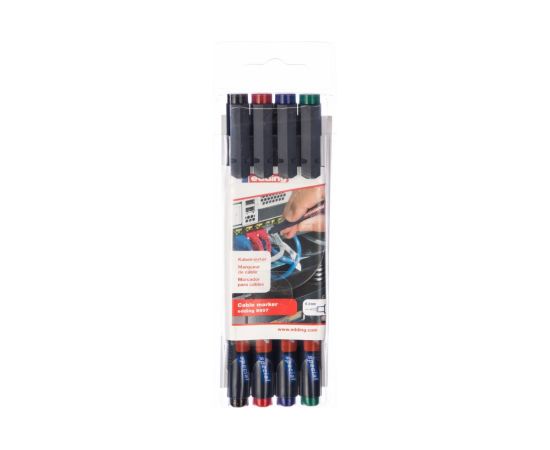 Набор маркеров для маркировки кабелей EDDING E-8407#4S 0.3мм черный, красный, зеленый, синий 09-3997 подойдет для нанесения мелких букв, разметки кабелей по цвету. Чернила маркеров обладают стойкостью к пыли, влаге, механическому истиранию, солнечным лучам. В набор входит 4 маркера: синий, зеленый, красный, черный.