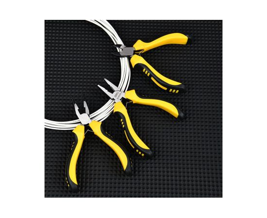 В набор входят комбинированные плоскогубцы длиной 115 мм, удлиненные плоскогубцы длиной 125 мм и бокорезы длиной 110 мм, каждый из которых обладает уникальными особенностями для эффективной работы.