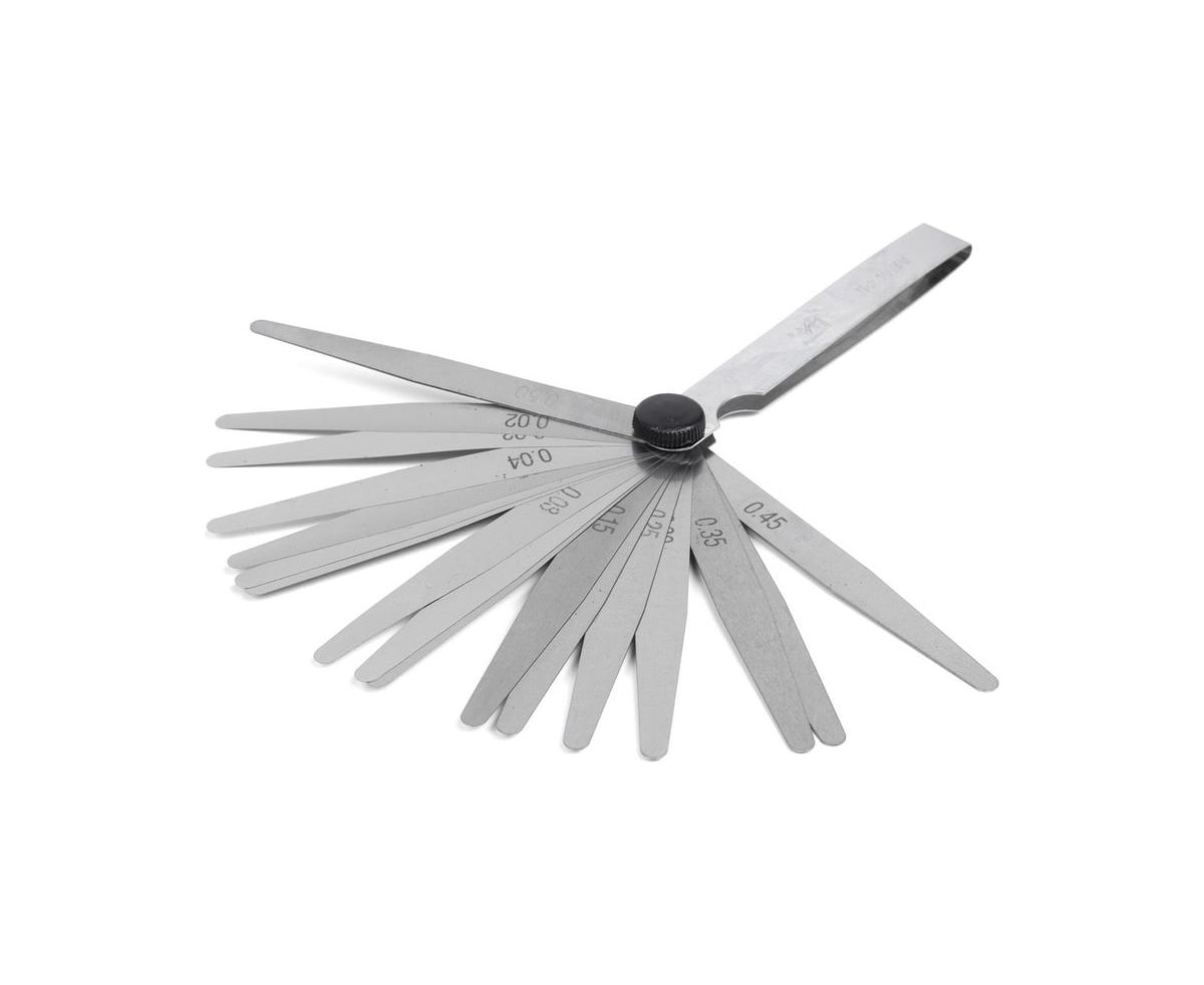 - Набор щупов в диапазоне 0,02-0,50 мм: 0,02; 0,03; 0,04; 0,05; 0,06; 0,07; 0,08; 0,09; 0,10, 0,15; 0,20; 0,25; 0,30, 0,35, 0,40, 0,45, 0,50