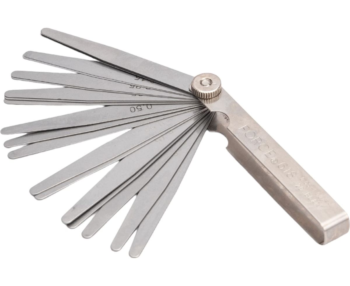 Набор щупов 20шт FORCE 618 - специализированный набор пластин в широком размерном диапазоне, предназначенный для выявления величины зазоров между деталями и элементами при ремонте автомобильного транспорта, мототехники и прочего оборудования. Складная конструкция данного приспособления облегчает его хранение и переноску.