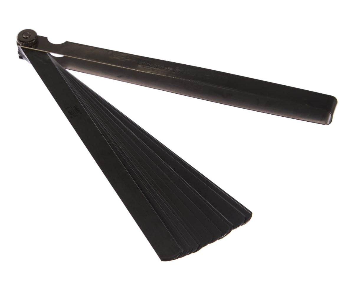 Измерительные щупы с двойной маркировкой (в миллиметрах и дюймах) для удобства считывания показаний, изготовленные из упругой стали с четкой гравировкой размеров.