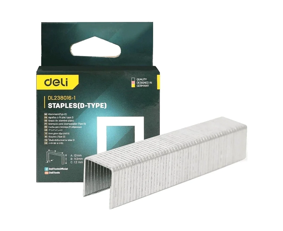 Набор скоб для степлера Deli DL238016-1 Тип D 12х11,3х1,2мм 1000шт