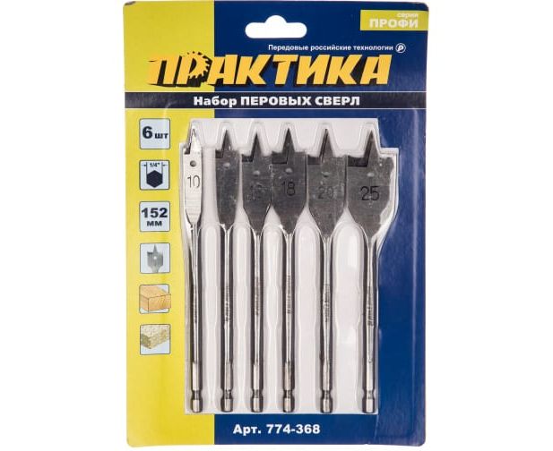 Набор сверл перовых Практика 774-368 6шт, блистер