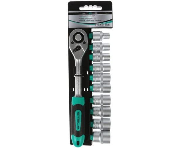 Набор торцевых головок Stels 14127 1/2"/головки 10 - 22 мм/с трещот, ключом/CrV/11 предметов
