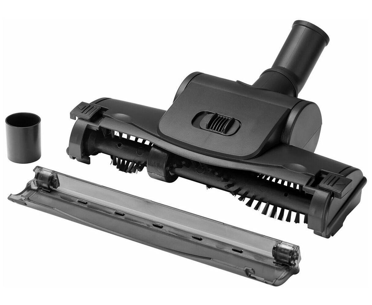 Универсальность. Универсальный переходник позволяет использовать насадку с любым пылесосом с диаметром удлинительной трубки от 32 до 38 мм. Бережное отношение к поверхностям. Прорезиненные колесики обеспечивают легкое перемещение насадки.Не оставляет царапин на плинтусах и мебели за счёт резинового канта по всему контуру насадки. Подходит для пылесосов с диаметром трубки 35 и 32 мм. Турбощётка имеет внутренний диаметр патрубка 35 мм.Для пылесосов с диаметром трубки 32 мм используйте адаптер, который входит в комплект. Чистка насадки Часть волос, шерсти, не попавшая в пылесборник, накручивается на вал турбощетки и может затруднить её вращение. Регулярная чистка турбощетки позволяет предотвратить снижение мощности всасывания. Отсоедините насадку от трубки пылесоса. Для очистки вала турбощётки сдвиньте фиксаторы передней прозрачной панели в стороны и снимите переднюю панель. Удалите шерсть и волосы, которые не попали в пылесос и намотались на вал турбощётки. Можно воспользоваться ножницами. Сборку производите в обратной последовательности. Для экспресс- очистки турбины и извлечения попавших в нее предметов на нижней поверхности турбощётки есть смотровое окно, закрытое крышкой. После извлечения предмета поставьте крышку на место. Окончательно очистите насадку с помощью рукоятки шланга работающего пылесоса.