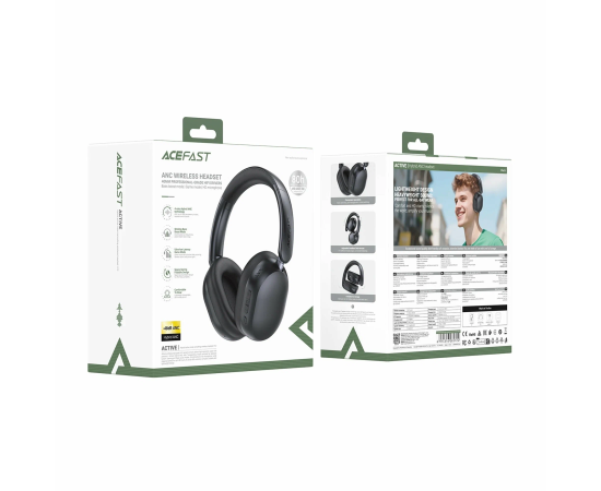 Наушники ACEFAST H12 hybrid active noise cancelling wireless headset Black