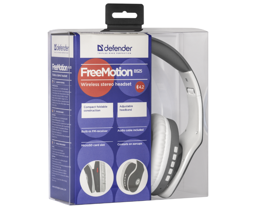 Наушники DEFENDER Freemotion B525 Grey/White (63527)