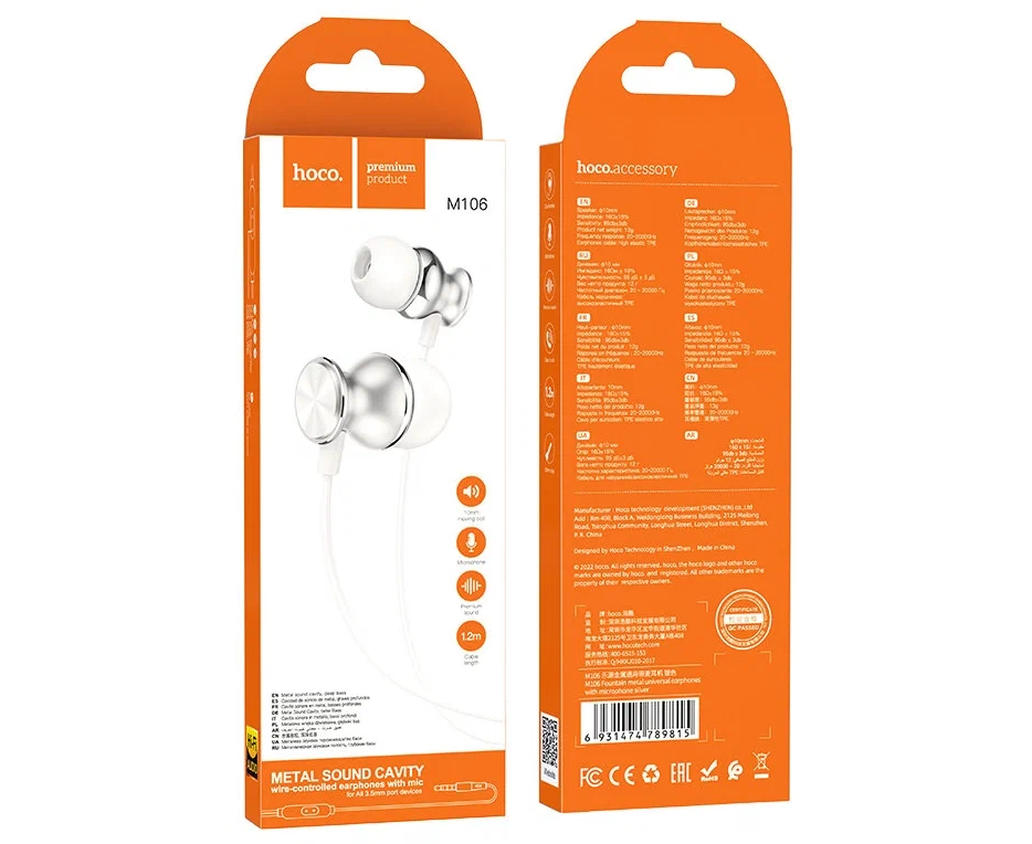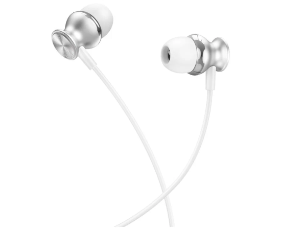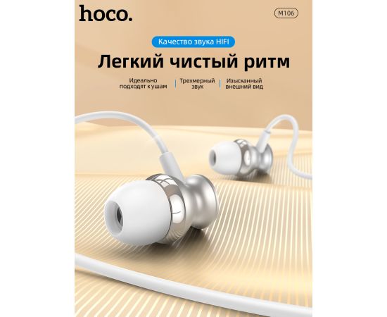 Наушники M106, Fountain metal universal earphones, HOCO, вакуумные, серебристые