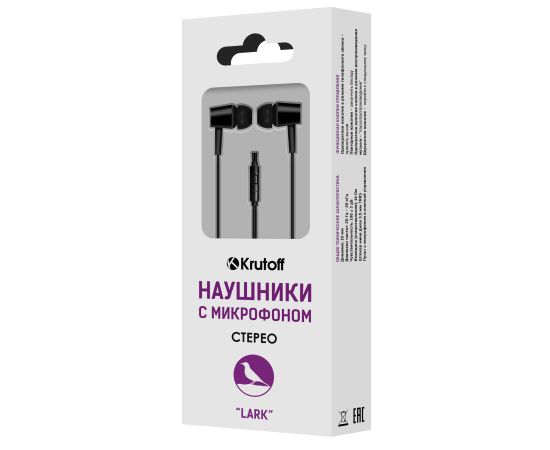 Наушники с микрофоном Krutoff Lark (черные)