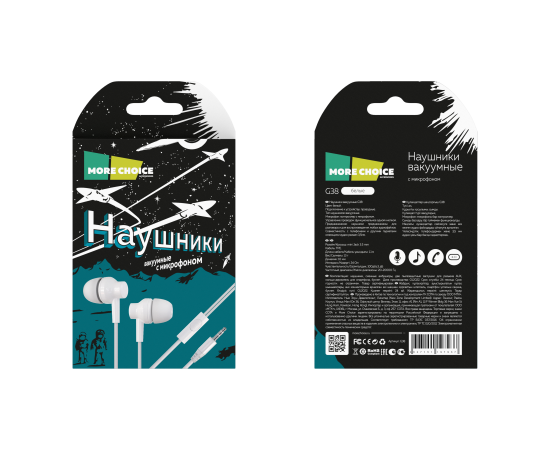 Наушники вакуумные AUX разъём с МК без рег.громкости длина 1.1м More Choice G38 (White)