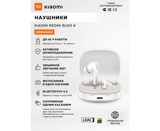 Наушники Xiaomi TWS Redmi Buds 6 White РСТ