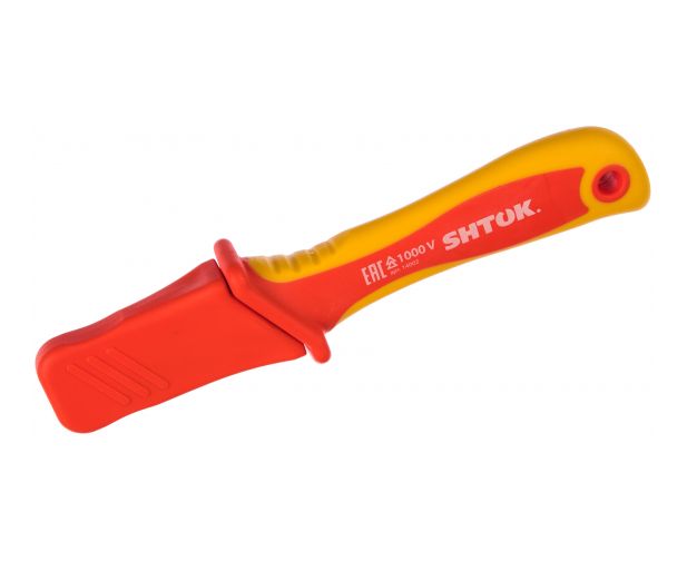 Нож для снятия изоляции SHTOK 1000В VDE 14002 оснащен частично изолированным лезвием. Обрезиненная рукоятка обеспечивает удобство работы и надежность захвата ножа. Возможно использование данного инструмента для работ под напряжением.