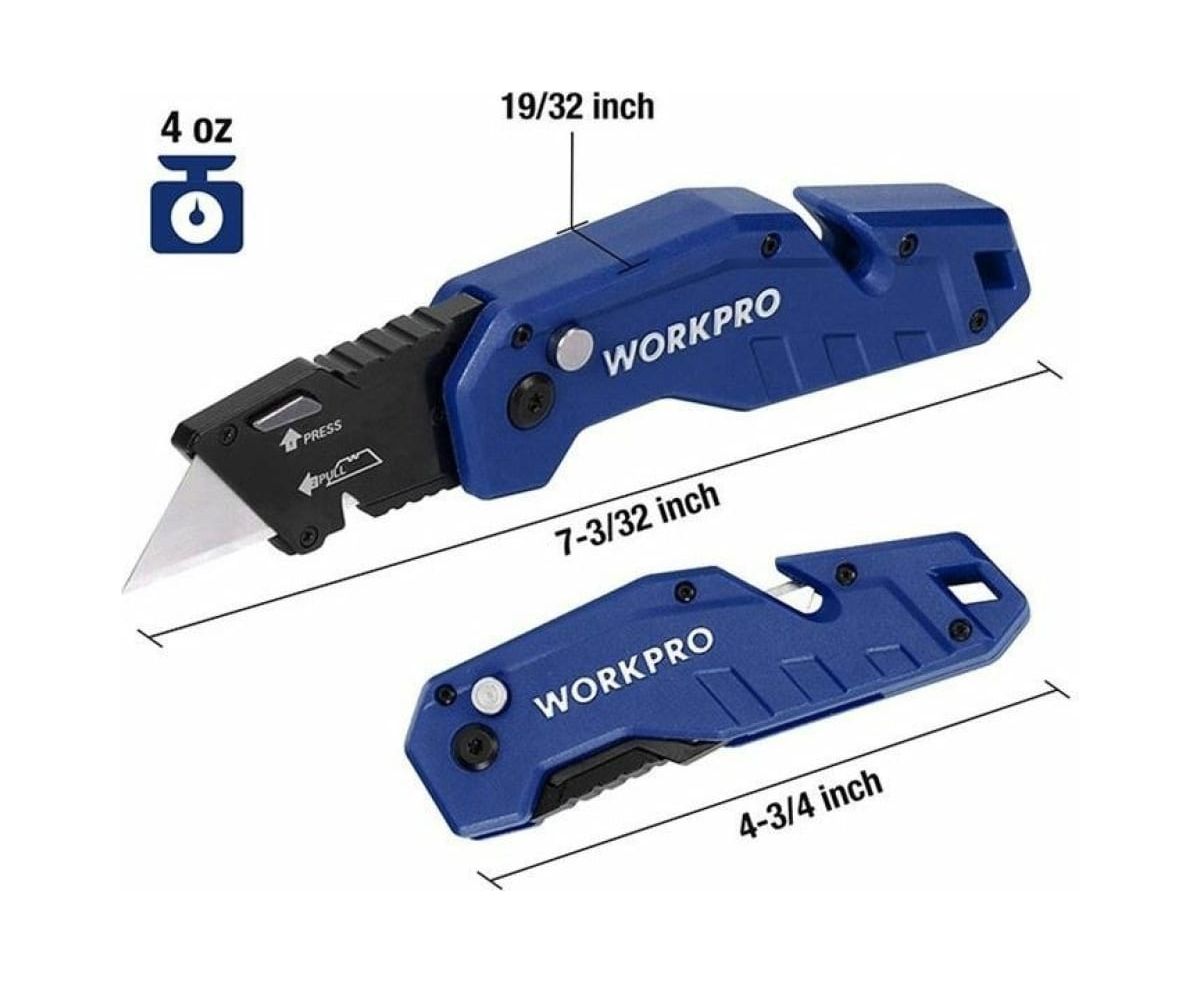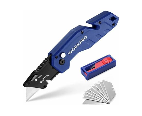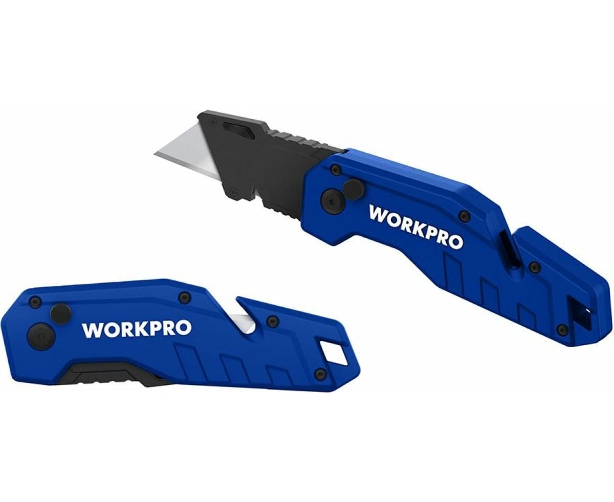 Нож Workpro WP211008 складной/быстросменный/нейлоновая рукоятка/трапец. лезвия 10 шт