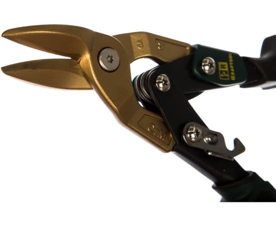 ожницы по твердому металлу, двойная рычажная передача, Cr-Mo, титановое покрытие, двухкомпонентная ручка, правые, усиленный ручной режущий инструмент для работы с твердым листовым металлом.