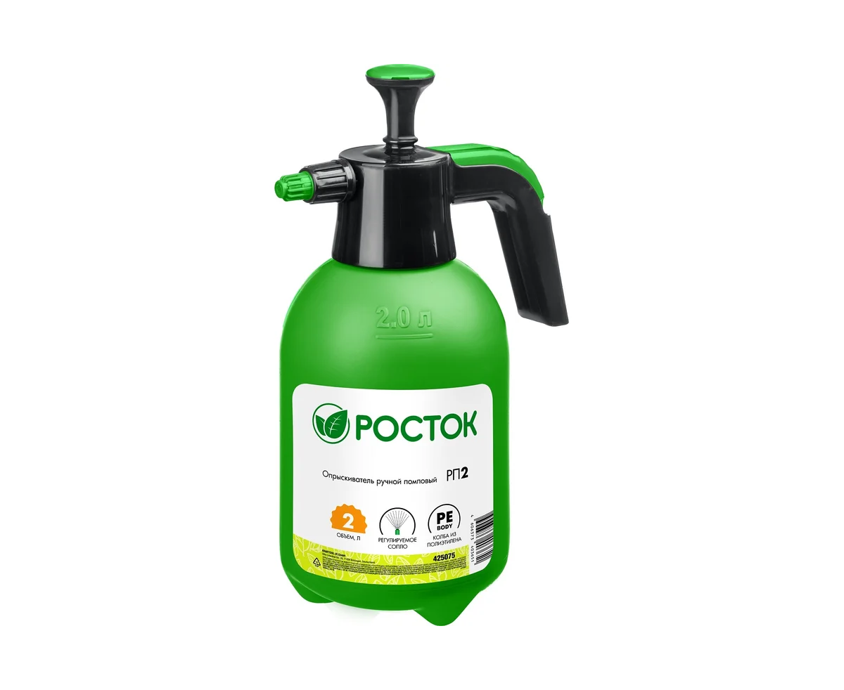 Ручной помповый опрыскиватель РОСТОК РП-2 2 л 425075 предназначен для дезинфекционных работ и ухода за растениями в овощеводстве, садоводстве, цветоводстве.
