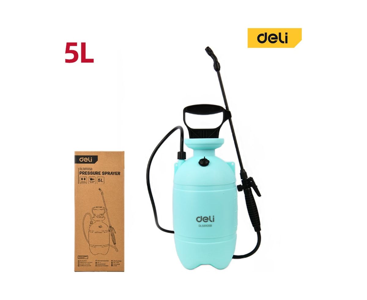 Опрыскиватель садовый Deli DL581105B помповый 5л, регулируемый разбрызгиватель, ремень для переноски