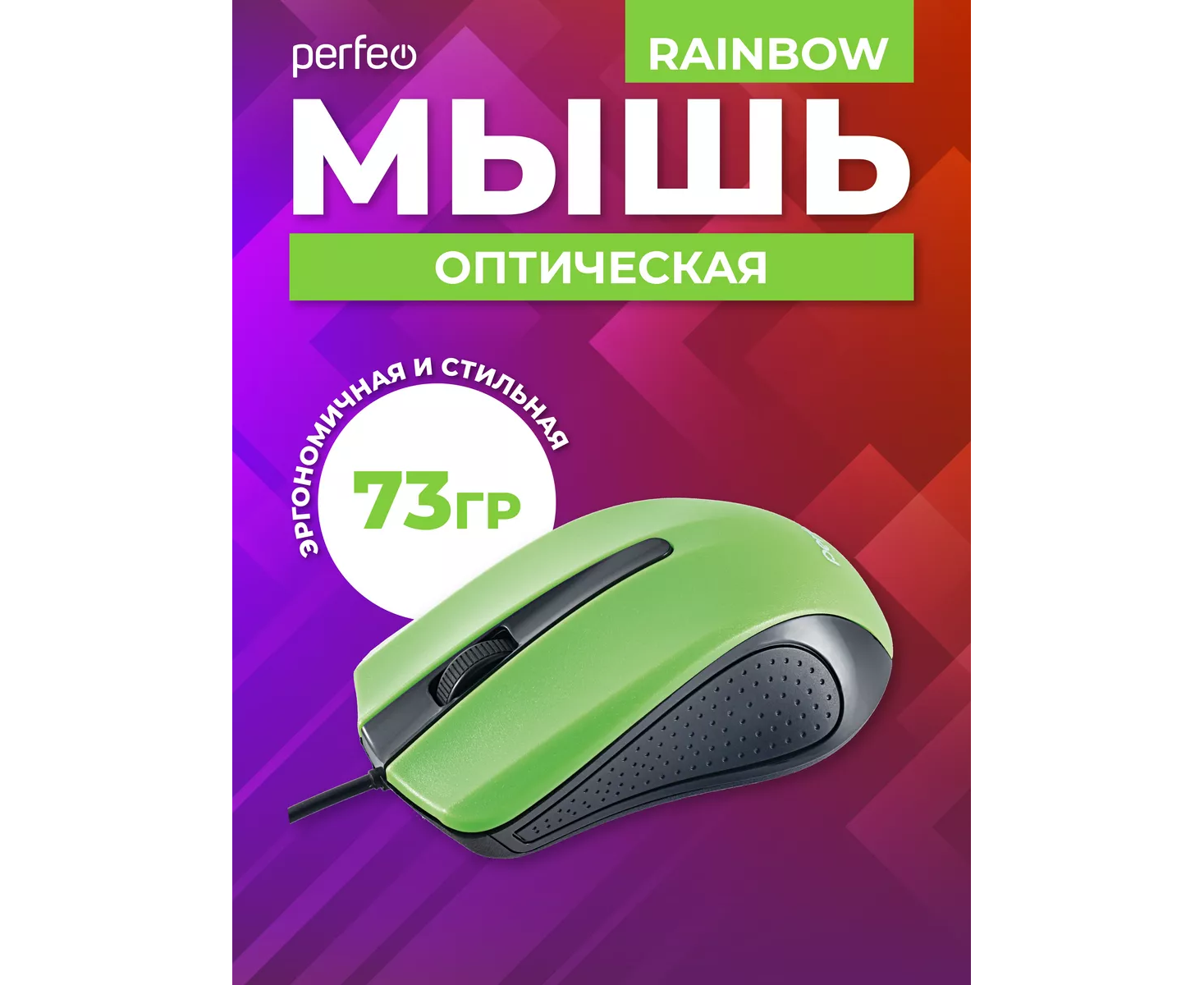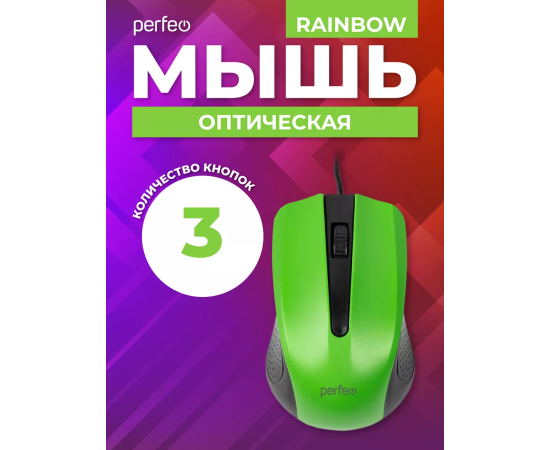 Оптическая мышь Perfeo "RAINBOW", 3 кн, USB, чёрный/зелёный, (Арт. PF_3442)