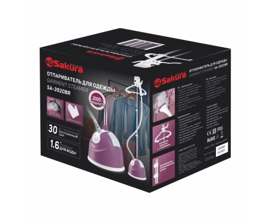 Отпариватель Sakura SA-3920BR ягодный 1,6л 2000Вт