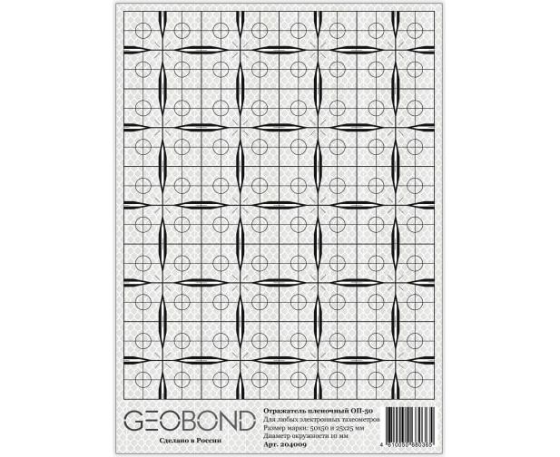 Отражатели Geobond ОП-50 имеют оригинальную форму, которая позволяет автономно использовать марку либо целиком (50 х 50 мм), либо 1/4 ее часть (25 х 25 мм). Это создает дополнительные удобства, т. к., приобретая всего один тип пленочного отражателя, пользователь имеет возможность, оптимально подбирать необходимый размер марки в зависимости от расстояний, на которых планируются измерения. К достоинствам разметки относятся бисекторные и контрбисекторные штрихи различной толщины, значительно упрощающие наведение на них, а также повышающие точность взятия углового отсчета при работе на больших расстояниях. Разметка пленочного отражателя нанесена специальной водостойкой краской, выдерживающей воздействия спирта и бензина, а сама пленка имеет гарантированный срок службы при уличной эксплуатации 10 лет.