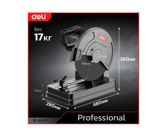 Отрезная пила Deli DE-XQ355-1E монтажная (2350Вт, 3800об/мин, диаметр диска 355мм)