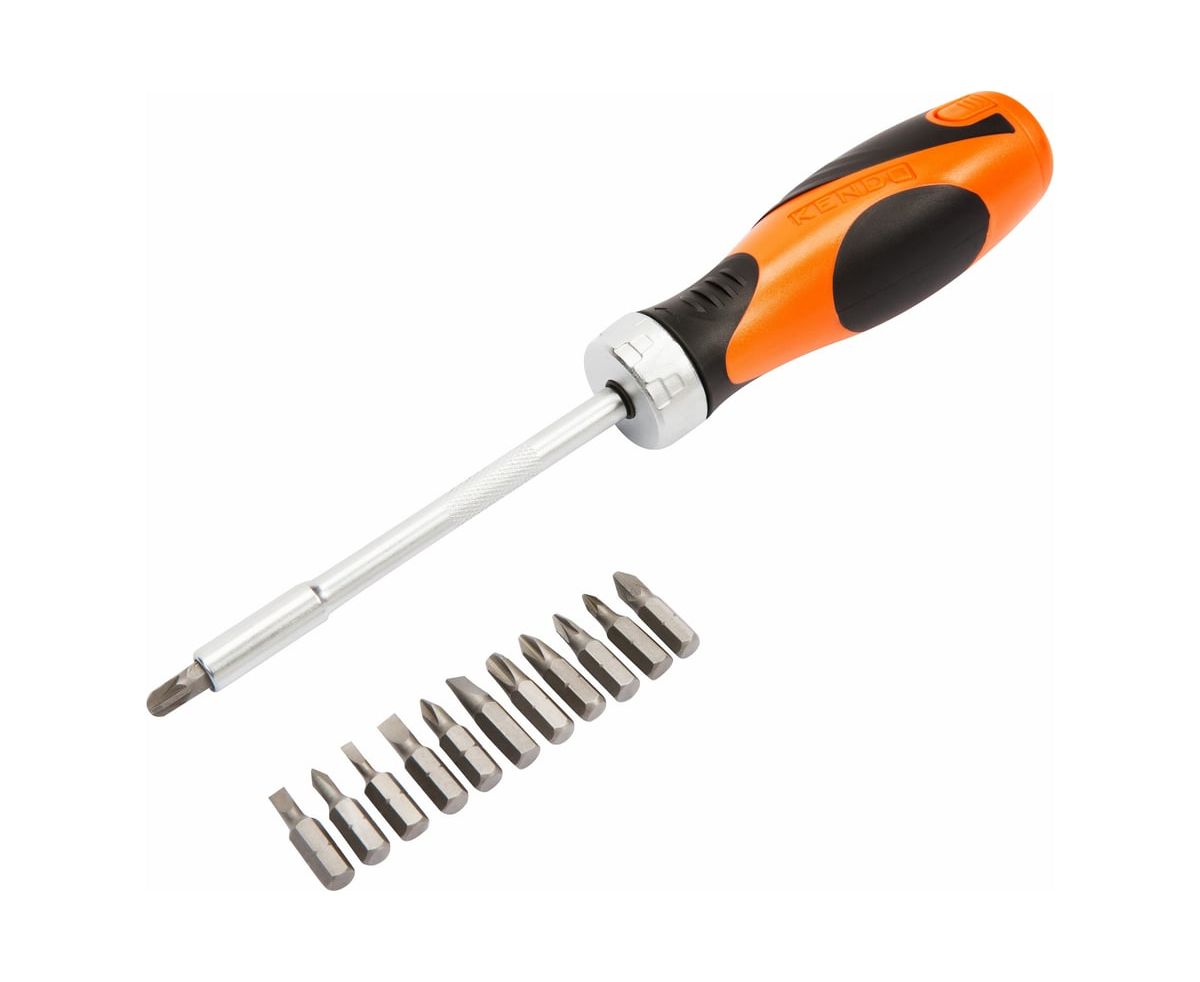 Отвертка с трещоткой KENDO 20016 с набором бит 14 предметов
