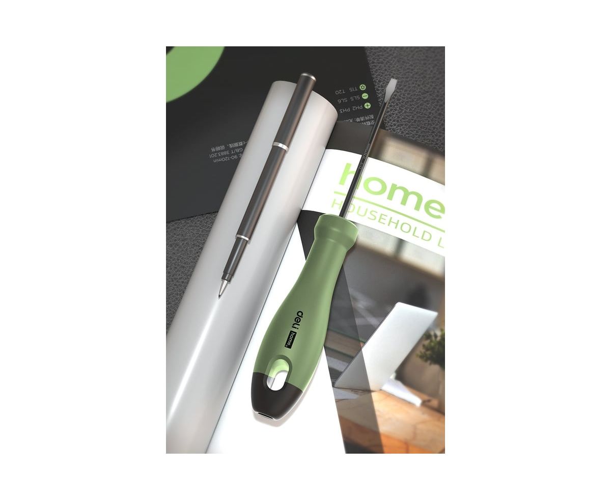 Отвертка шлицевая Deli Home Series Green HT1103L 3x75мм Эксклюзивный дизайн, рукоятка из высококачественного софттач пластика