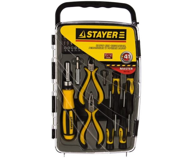 Отвертка STAYER Master 25311-H41 реверсивная с эргономичной ручкой, с насадками, 41 предмет