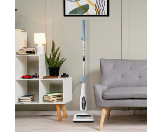 Паровая швабра обладает большим углом наклона, который поможет легко убрать пространство под мебелью. Напольная щётка закреплена на специальном шарнире с наклоном в двух плоскостях, что делает швабру очень манёвренной и облегчает уборку.