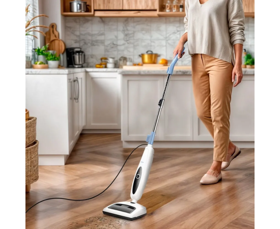 Паровая швабра с электровеником КТ-3912 – универсальное устройство, которое совмещает себе функции паровой швабры и электровеника. Прибор поможет быстро избавиться от мусора и пыли, а также очистить и продезинфицировать напольные покрытия паром.
