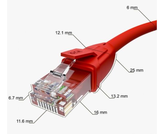 Патч-корд Greenconnect GCR (GCR-52531) прямой 5.0m UTP кат.6, красный, 24 AWG, литой, RJ45(m) - Cat. 6 U/UTP PVC 5м ethernet high speed, RJ45, T56