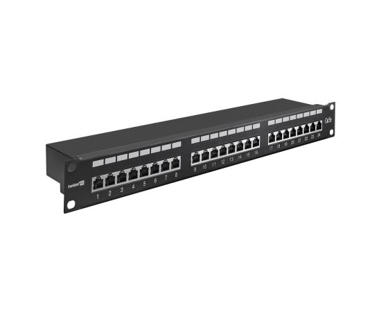 Патч-панель ExeGate EPP3-19-24-8P8C-C5e-SH-110D (EX281083RUS) 19", FTP, 24 port,cat.5e,KRONE&110(dual IDC), 1U, RoHS, с каб. органайзером, Black, RTL