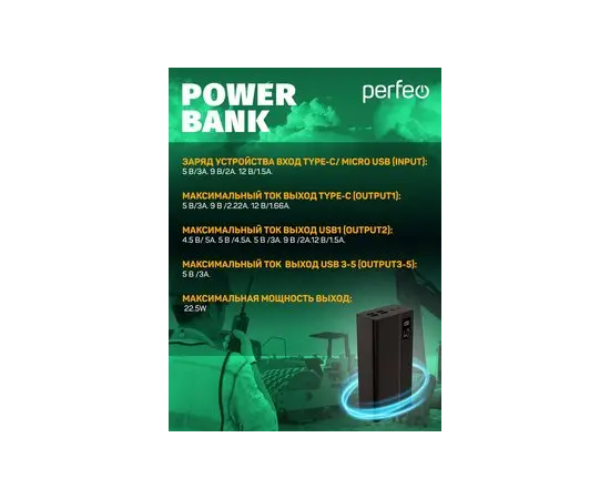 Представляем Вашему вниманию модельный ряд пауэр банков для экстремальных условий использования. Данные внешние аккумуляторы имеют большую емкость, и поддерживают быструю зарядка как самого себя так и устройство. Внешний аккумулятор Power Bank (повербанк, пауэр банк, портативная зарядка, портативное зарядное устройство) для различных устройств таких как смартфонов, телефонов, планшетов, часов, наушников. Ёмкость повербанка от 30000 до 50000 mAh. Power bank поддерживает технологию Quick Charge 3.0 и PD (20W) обеспечивает высокую скорость зарядки устройств. Устройство оснащено дисплеем с индикацией остаточной емкости. Пауэр Банк имеет 5 разъемов для одновременной зарядки устройств – 4 – USB, 1 - TYPE-C. Для зарядки самого устройства можно использовать входной разъем Micro-USB или Type-C. Power bank имеет встроенную защиту от короткого замыкания, перезарядки или от сильной разрядки, защиту по напряжению. Вход для зарядки внешнего аккумулятора (Micro/Type-c): DC5V/3A, 9V/2A, 12V/1.5A. Таким образом заряд самого пауэр банка будет намного быстрее, чем обычного. Выходные напряжения у Type -C: DC5V/3A, 9V/2.22A, 12V/1.66A. Выходные напряжения USB №1: DC4.5V/5A, 5V/4.5A, 5V/3A, 9V/2A, 12V/1.5A. Выходные напряжения USB №2, №3, №4: DC5V/3A(Max). Максимальная выходная мощность (суммарная): 22.5W(Max)