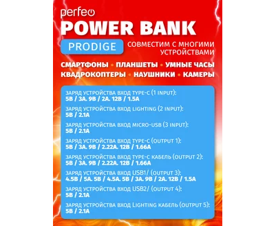 Мощный и емкий портативный внешний аккумулятор повербанк Prodige 80000 mAh с поддержкой быстрой зарядки способен заряжать до 6 устройств одновременно. Очень ёмкий, ёмкость составляет 80000 mAh, что позволяет подзаряжать оборудование в длительных походах когда нет доступа к электросети. Запаса энергии хватает для полного заряда десяти смартфонов, нескольких планшетов, цифрового фотоаппарата и других мобильных устройств которые Вы взяли в поход. Аккумулятор поддерживает технологию быстрой зарядки, а также оборудован системой защиты для безопасной зарядки подключенных устройств. Цифровой дисплей отображается текущий уровень заряда аккумулятора, это очень удобно, Вы всегда знаете сколько энергии осталось и когда следует подзарядить аккумулятор. На задней панели устройства расположен LED-фонарик для использования в темное время суток. Благодаря передовой системе безопасности, аккумулятор стабилизирует разрядное напряжение и обеспечивают защиту от короткого замыкания, гарантируя безопасную и эффективную работу устройств. Представленная модель оснащена входами: Type-C, USB, Lightning. Это значит, что вы свободно сможете подзаряжать сам аккумулятор тем кабелем, которым заряжаете свой смартфон. Порт Type-C имеет двухстороний заряд, как на вход, так и на выход. По-настоящему прочный корпус из поликарбоната защитит внутренние элементы от повреждений, что гарантирует длительный срок эксплуатации. Специальный кожаный ремешок на руку удобен для переноски и не позволит случайно выронить power bank. Технические характеристики по напряжениям и токам указали на фотографиях.