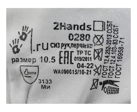 Технические характеристики перчаток 2Hands овечья кожа 0280-10,5