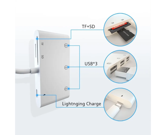 Переходник iNeez 912420 Lightning to USB 3 Reader HUB + TF/SD for iPhone/iPad White