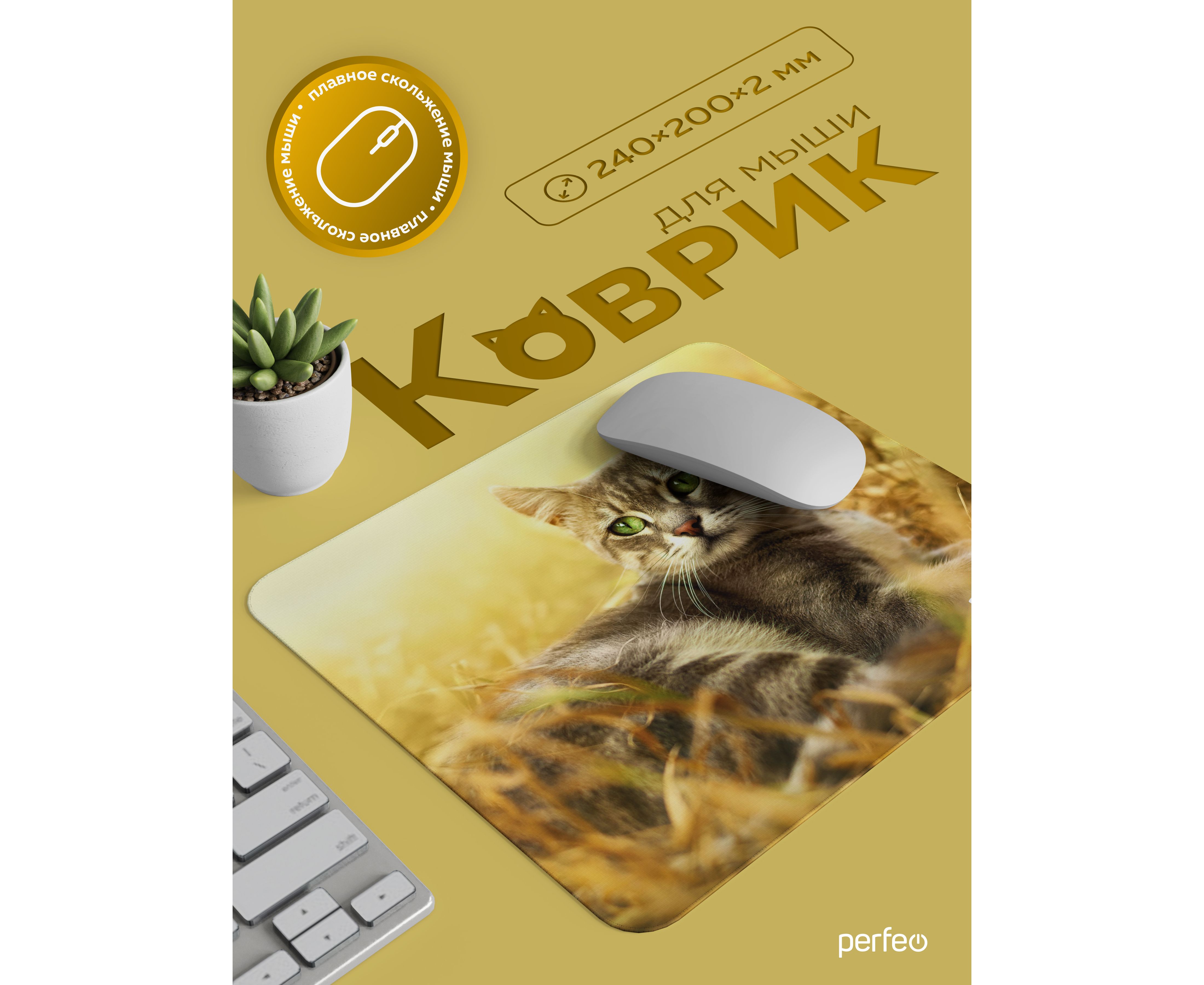 Perfeo Коврик для компьютерной мыши "Cat", Рис.47 (240*200*2 мм), ткань+резиновое основание
