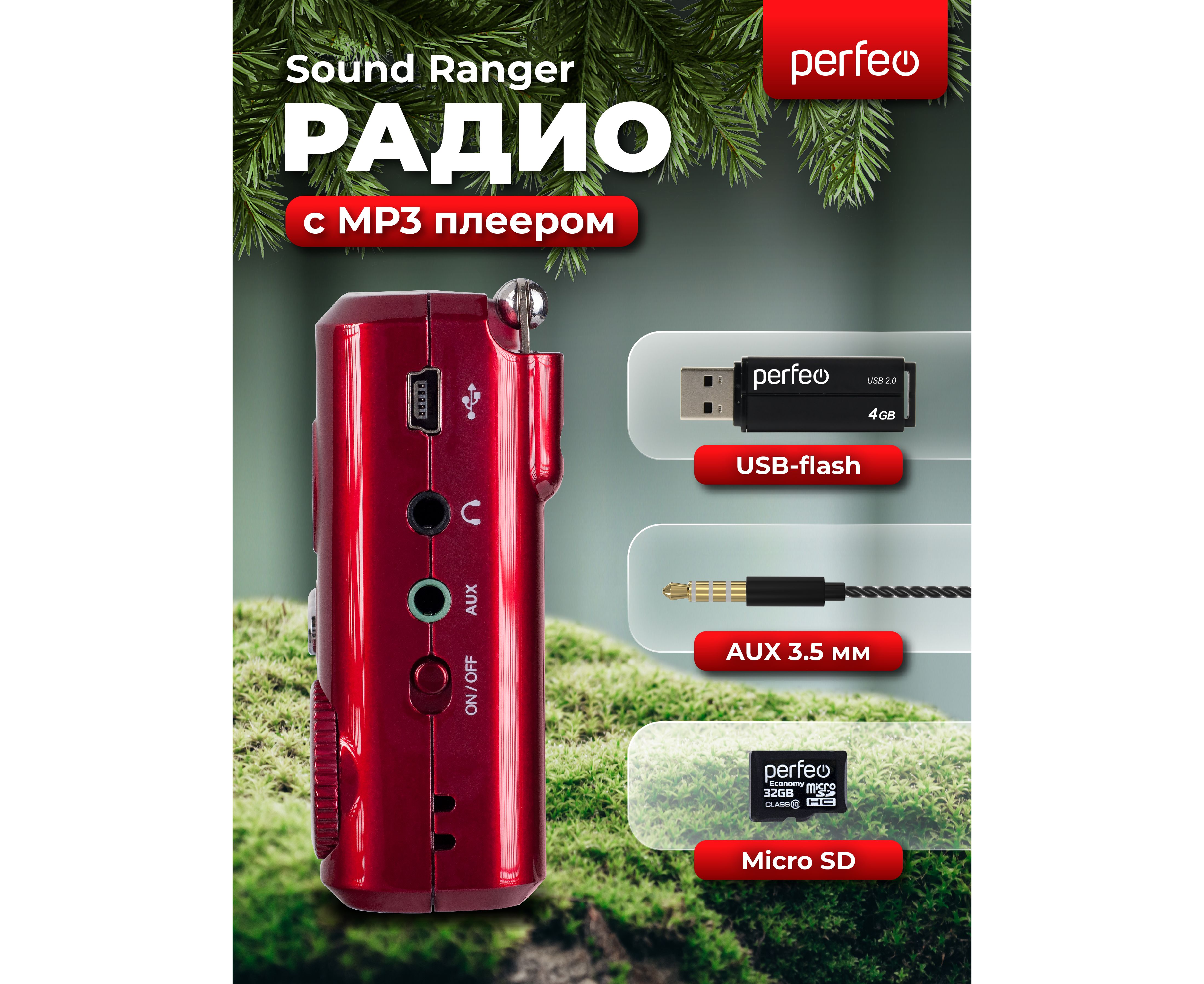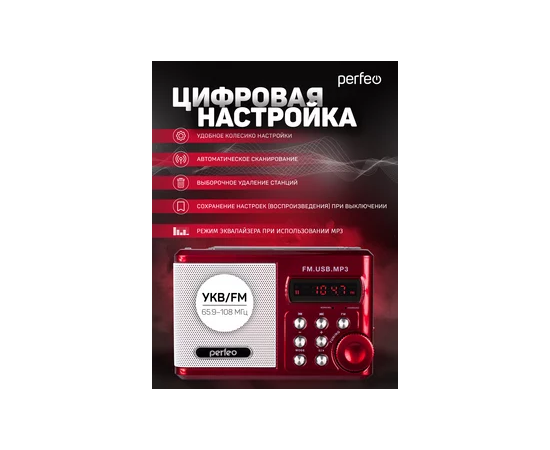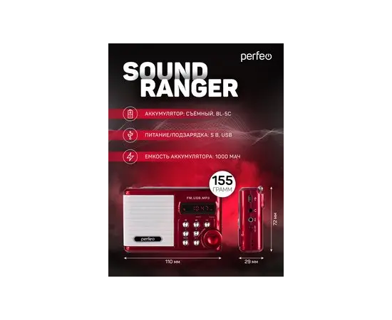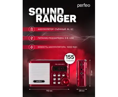 Цифровой радиоприемник Perfeo Sound Ranger, УКВ+FM, MP3 (USB/TF), USB-audio, BL-5C 1000mAh, Красный (SV922RED)