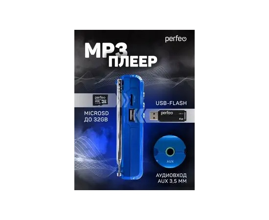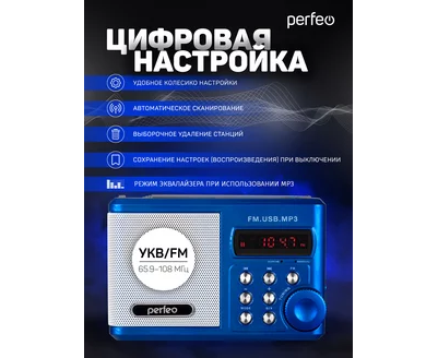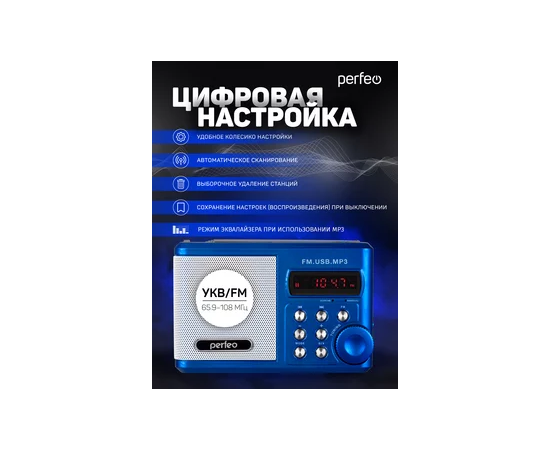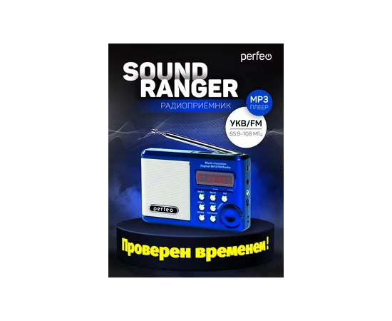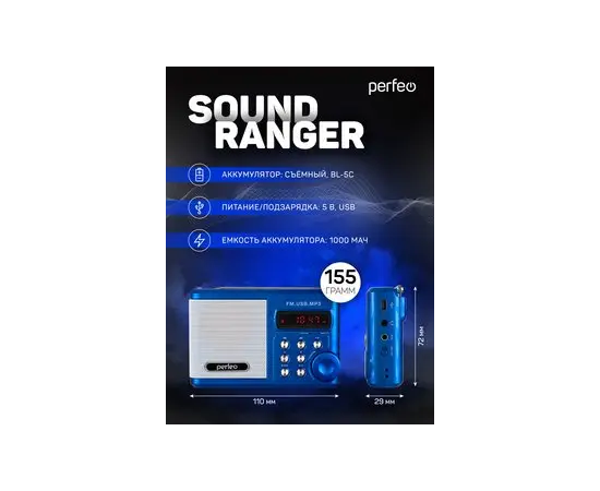 Радиоприемник цифровой Perfeo Sound Ranger, УКВ+FM, MP3 (USB/TF), USB-audio, BL-5C 1000mAh, синий (SV922BLU), (Арт. PF_3183)