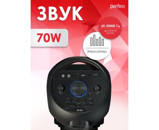 PERFEO PF_B4986 POWER BOX 70 - это превосходная акустическая система с Bluetooth-подключением и широким набором функций. Она обеспечивает высокое качество звука благодаря своим мощным динамикам и имеет удобные интерфейсы для подключения различных устройств. С ее помощью вы сможете создать потрясающую атмосферу в вашем доме или офисе.