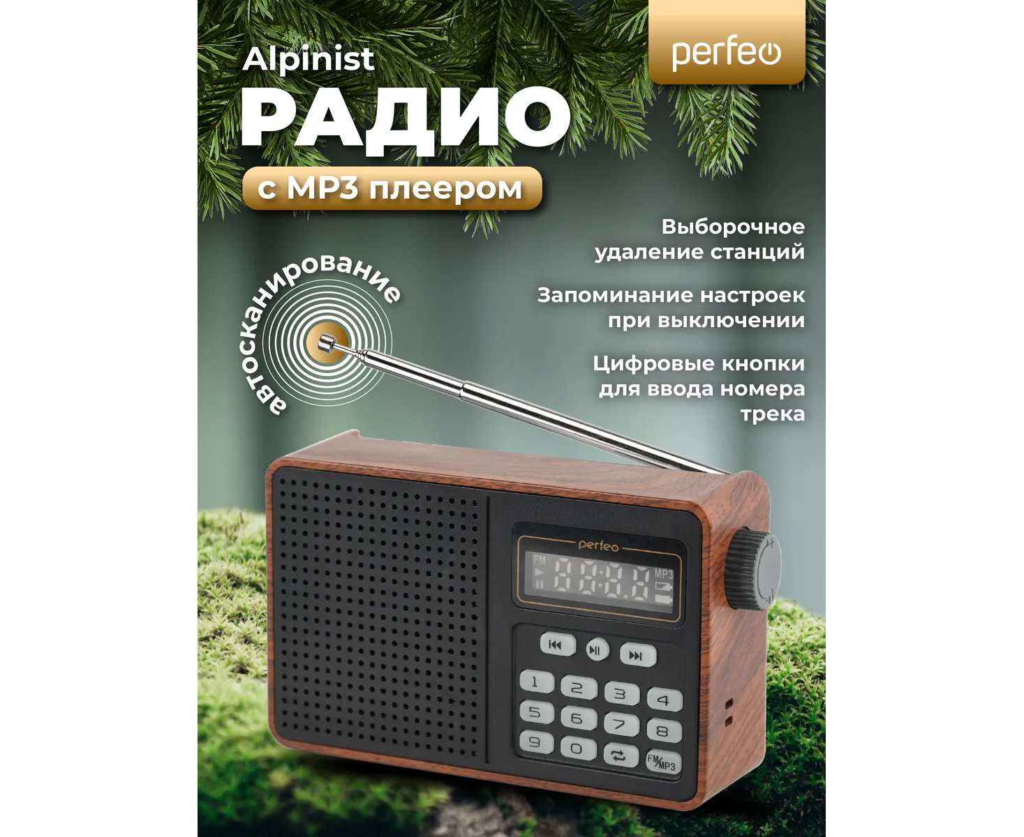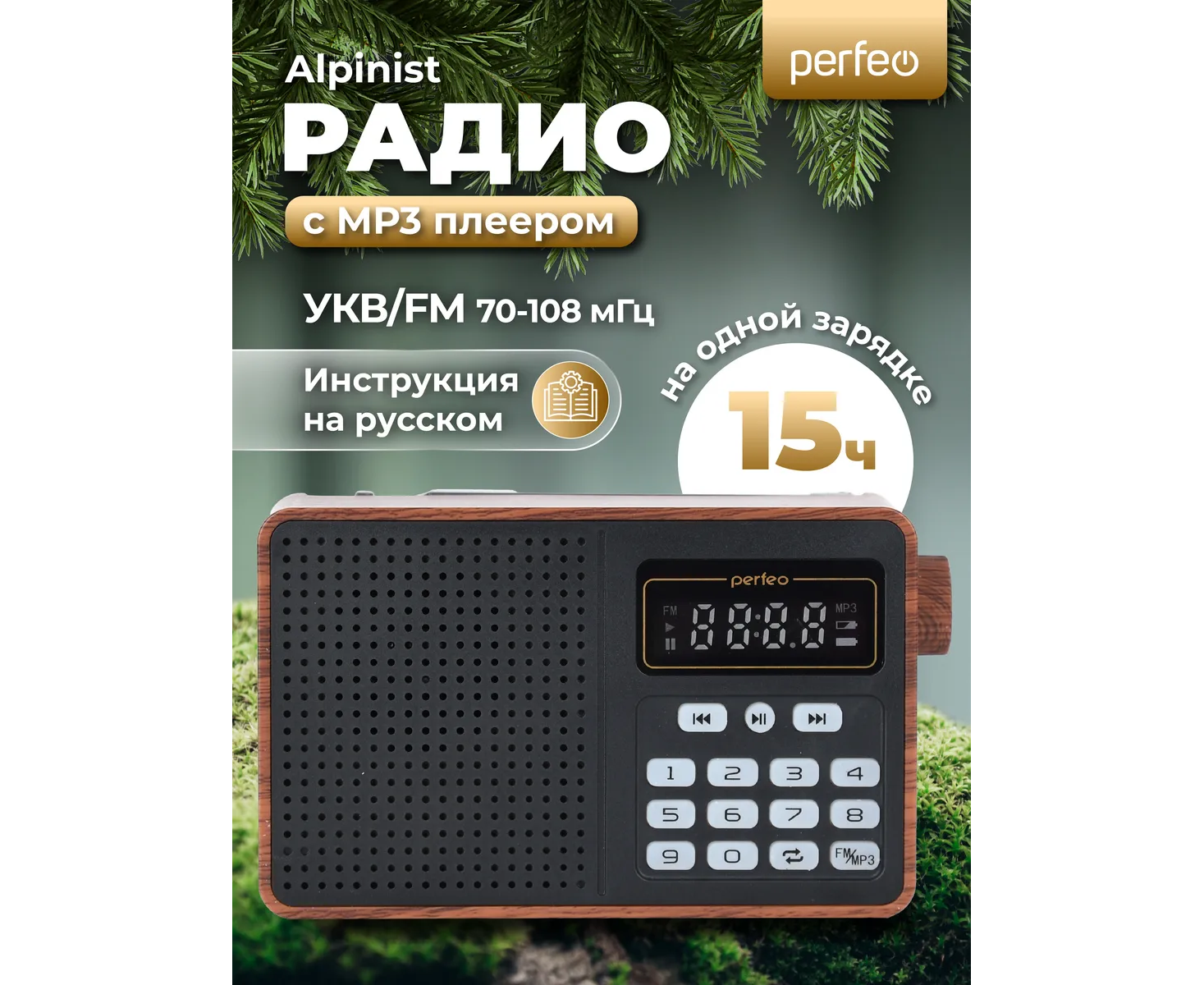 Радиоприемник цифровой Perfeo ALPINIST FM+ 70-108МГц/ MP3/ питание USB или 18650/ Коричневый, (Арт. PF_D0573)