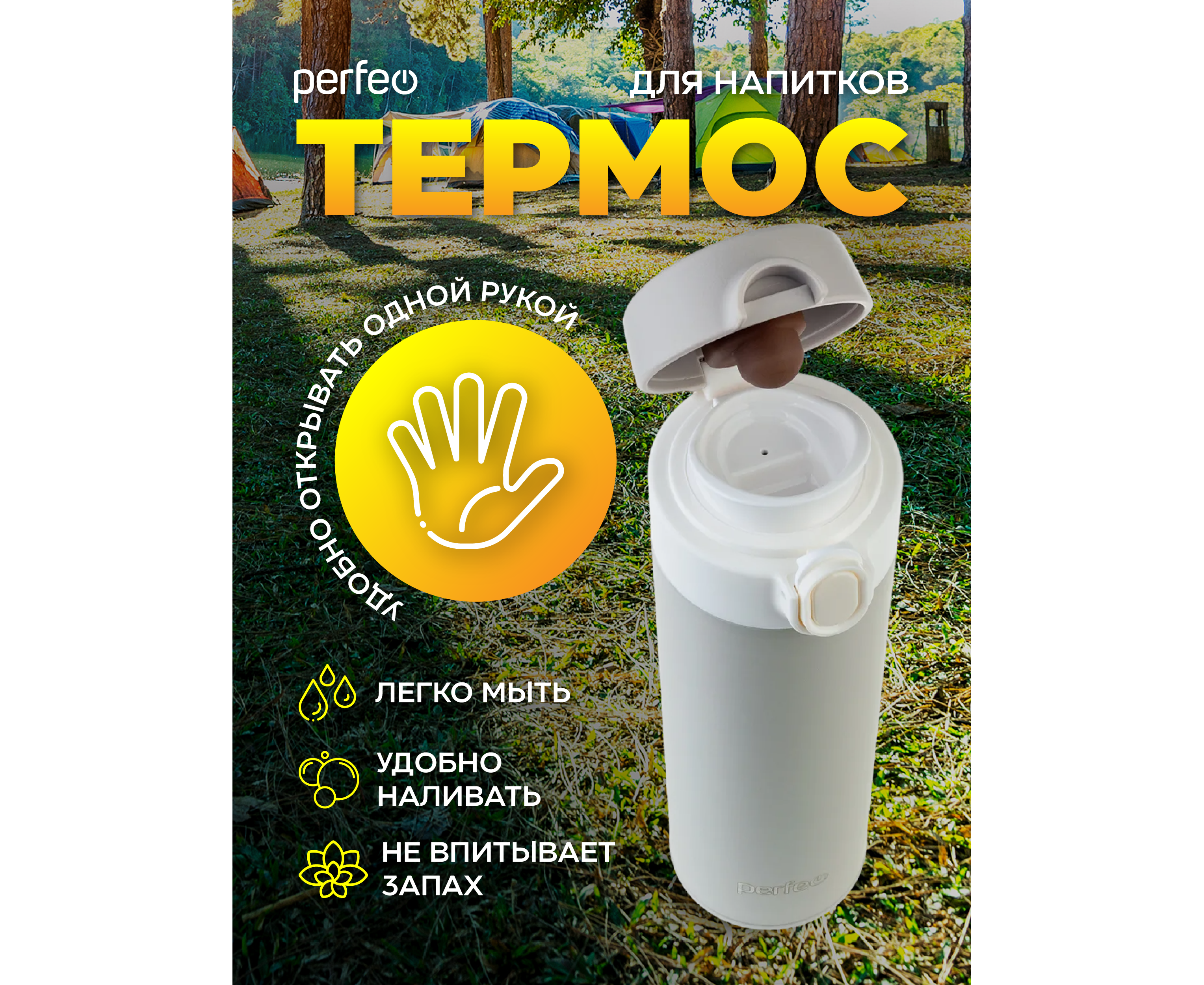 Термос для напитков PERFEO с крышкой-поилкой, объем 0,5 л., серый, (Арт. PF_D0208)
