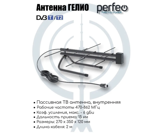 Антенна ТВ Perfeo "ГЕЛИО", пассивная, DVB-T2 (BAS-5133P), (Арт. PF_B4325)