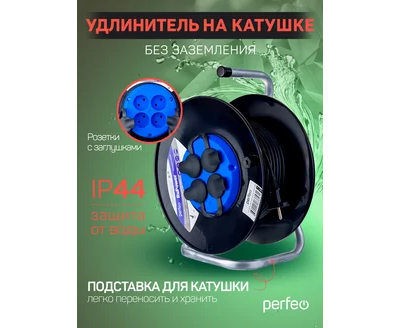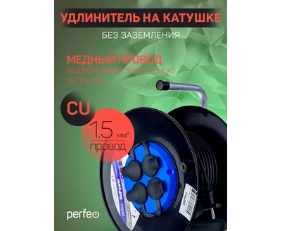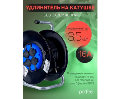 Удлинитель на катушке без заземления Perfeo "RU POWER" 50м 4гн 16А ПВС 2х1,5 IP44 (РБК16), (Арт. PF_C3369)