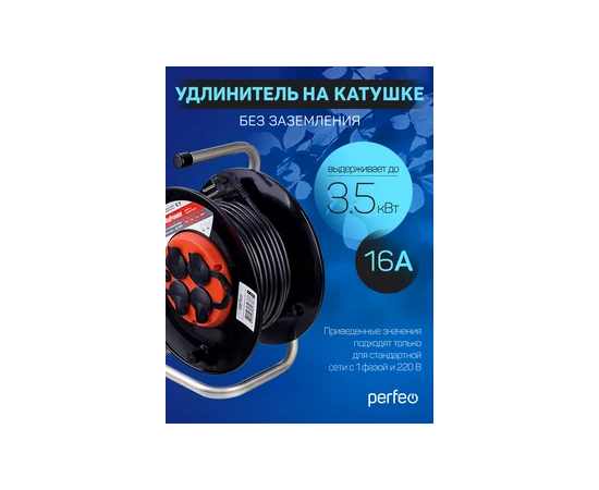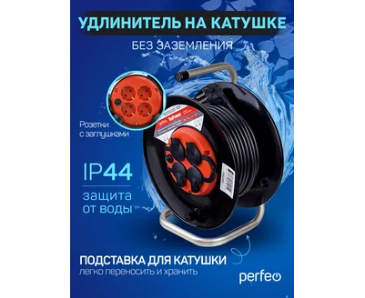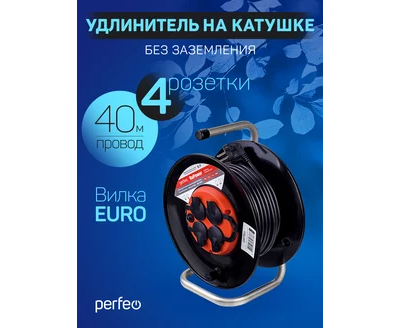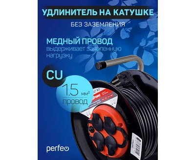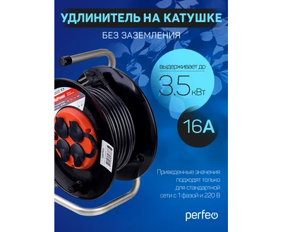 Удлинитель на катушке с заземлением Perfeo "RU POWER" 40м 4гн с т/з 16А ПВС 3х1,5 IP44 (РБК16).